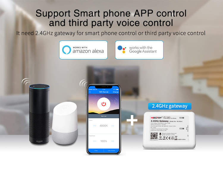 De MLR1 ondersteunt bediening via de "Tuya Smart" app en is compatibel met Alexa, Google Assistant en Yandex Alice. Voor app- en stembediening is een 2.4GHz gateway (zoals de WL-Box2) noodzakelijk.