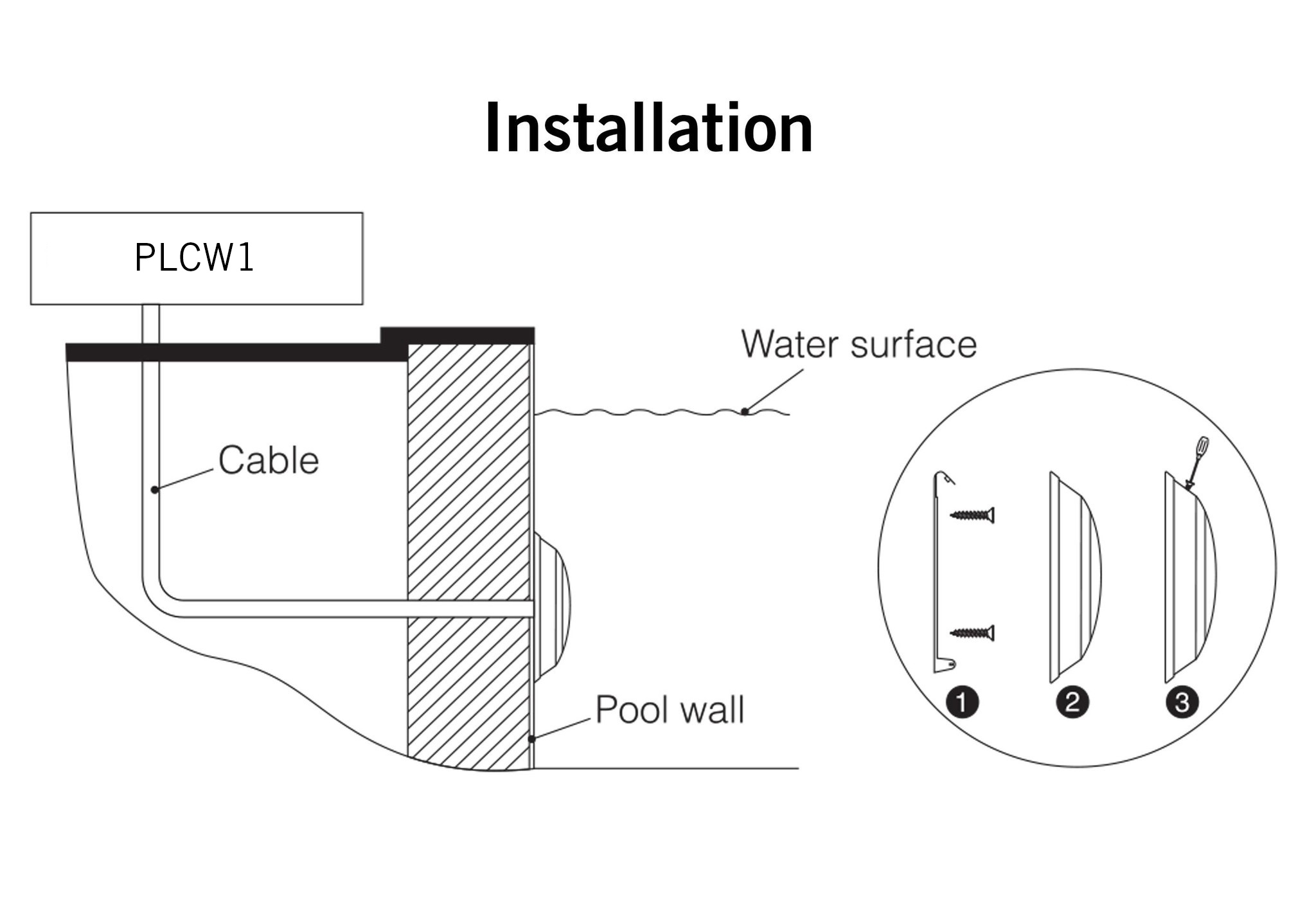 De PLC-WP1 zwembadlamp functioneert niet zelfstandig en kan niet direct op een voeding worden aangesloten.