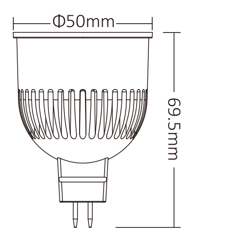 | Afmeting lamp: | diameter 50 mm × hoogte 49mm, reflector 25 graden |