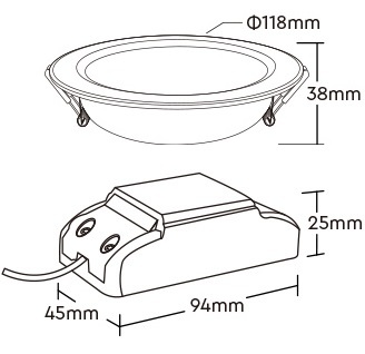 | Afmetingen: | inbouwgat zaagmaat: 90 a 95 mm, hoogte: 38mm, buitenring: 120mm |