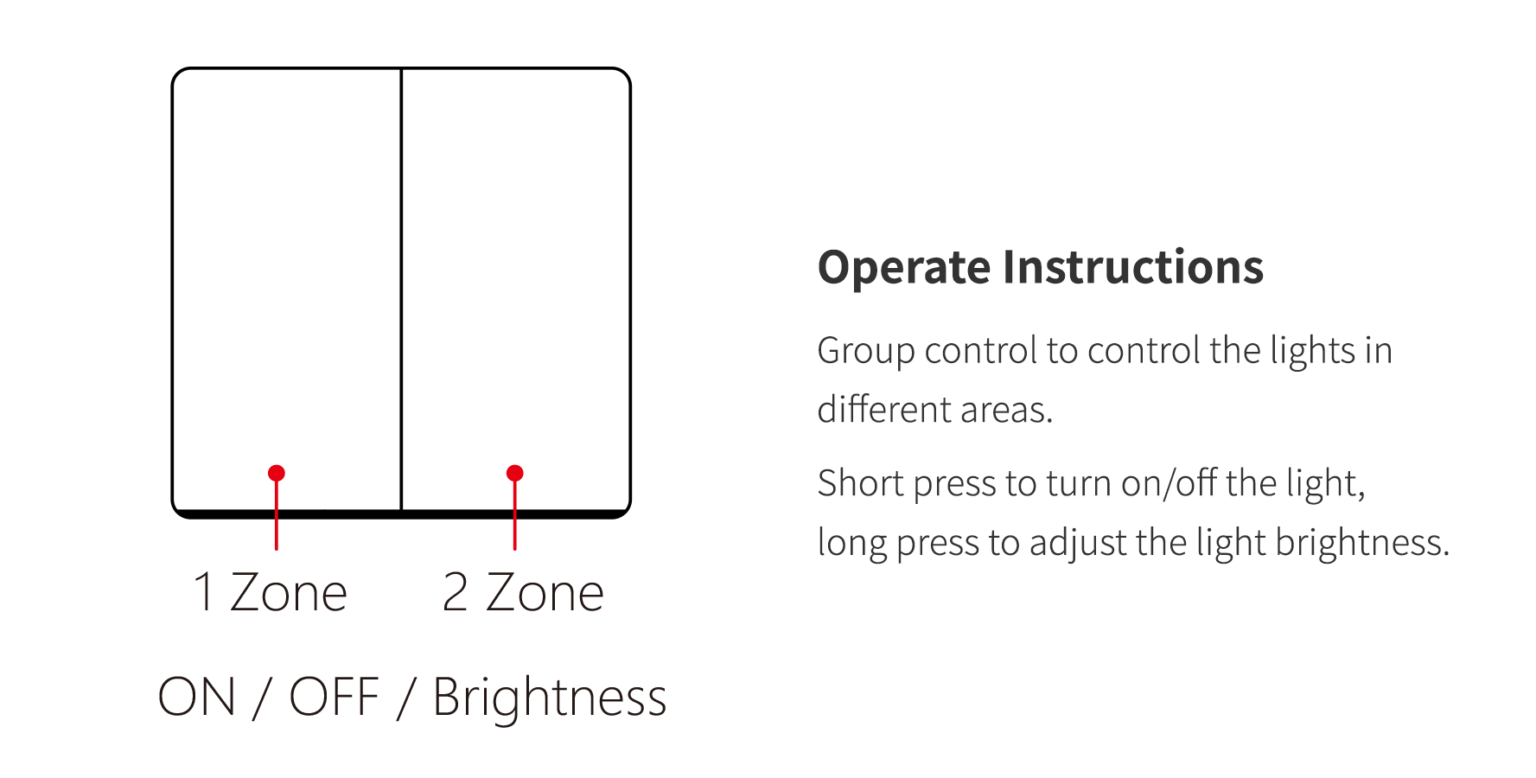 MiBoxer PUSH3 2 Zones draadloos dimpaneel is een ultraslanke wandschakelaar waarmee u twee lichtzones volledig draadloos kunt dimmen. Het paneel werkt op een CR2032-knopcel, waardoor er geen 230V-bedrading nodig is. Ideaal voor renovaties, extra schakelaars of plaatsen waar u geen kabels wilt trekken.