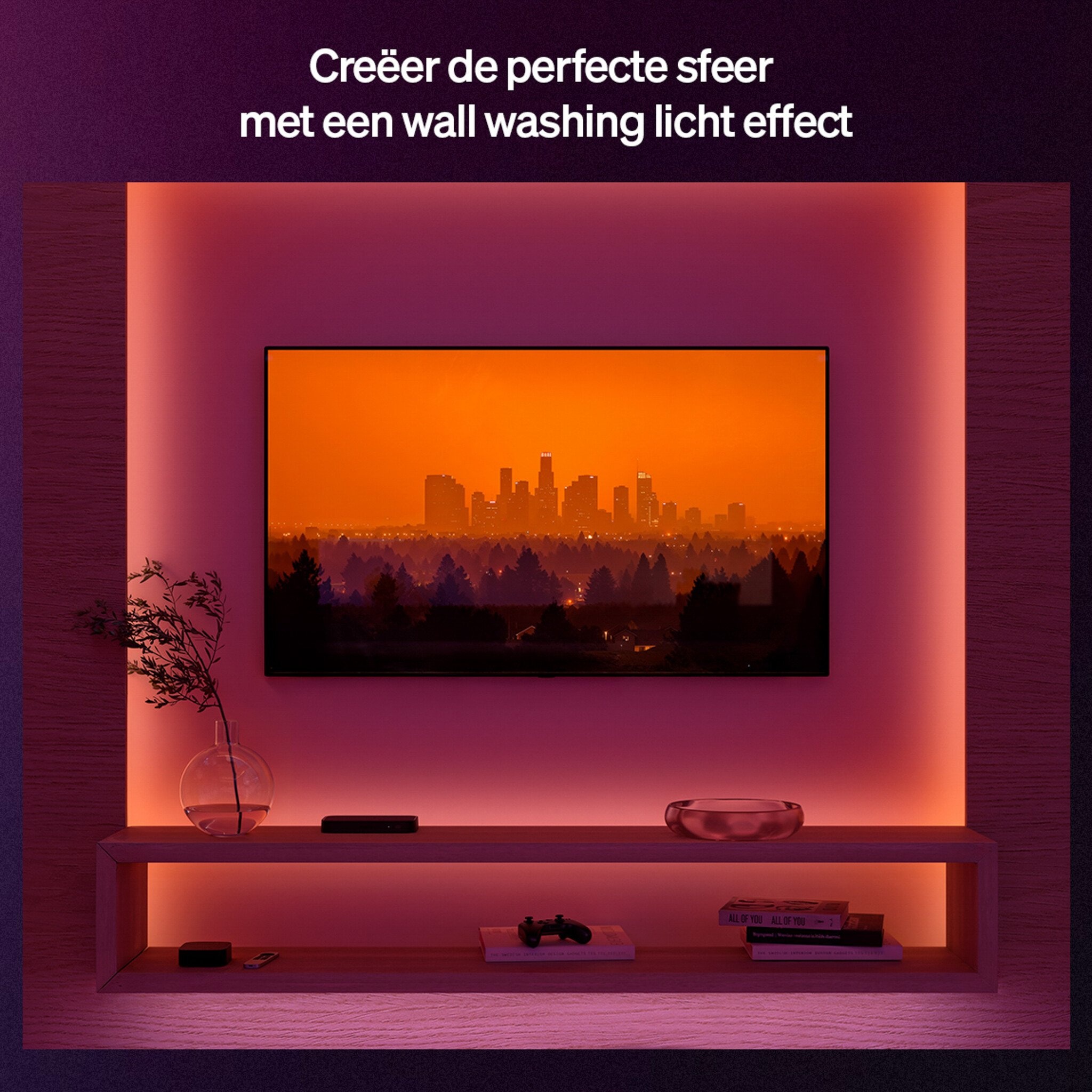 De Flux LED strip geeft een fijne lichtlijn voor wall washing verlichting in binnenruimtes, met consistente kleurverlopen dankzij de nauwkeurige kleurovergangen van Chromasync™. Verlicht hoeken met de puurste wittonen, met speciale witte en warmwitte LED's. Gebruik de Flux stripverlichting achter tv-kasten, om de hoeken van je bed en langs boekenkasten om zacht, indirect licht te krijgen dat bij elke stemming past. Profiteer van een flexibele plaatsing. Je kunt de strip inkorten, hergebruiken en verlengen om in elke binnenruimte te passen. Krijg totale controle, aanpasbaarheid en gepersonaliseerde lichtscènes met de bekroonde Hue app en stembediening.